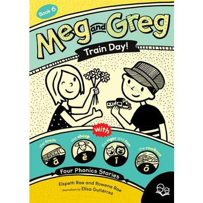 Meg and Greg: Train Day! is the sixth book in the Meg and Greg series designed for shared reading between a child learning to read and an experienced reader. The four stories inside (plus a bonus mini story!) introduce long vowels using vowel teams (long a: ai, ay, a, a-e; long e: ee, ea, e, y, e-e; long i: igh, ild, ind, i, y, i-e; long o: oa, ow, old, oll, olt, ost, o, o-e; long u: ue, ew, u, u-e). In addition to the familiar comic-style kids' pages, highly controlled and decodable prose pages gently increase the amount of text that readers experience and provide even more opportunities to practice the reading skills previously introduced in Meg and Greg Books 1-5.