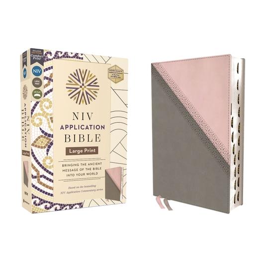 NIV Application Bible, Large Print, Leathersoft, Pink/Gray, Red Letter, Thumb Indexed, Comfort Print