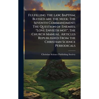 This collection of articles, "Fulfilling the law; Baptism; Blessed are the Meek; The Seventh Commandment; The Question of Enemies; 'Love Envieth not'; The Church Manual," originally published in Christian Science periodicals, offers insights into Christian Science principles and their practical application. The writings explore a range of topics central to Christian Science theology and ethics, including the interpretation of law, the significance of baptism, the virtues of meekness, adherence to the Seventh Commandment, approaches to dealing with enemies, and the nature of love as described in scripture.