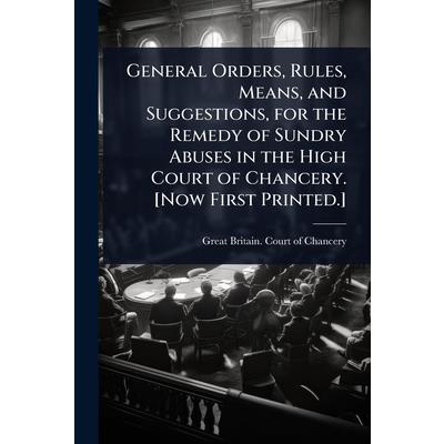 General Orders, Rules, Means, and Suggestions, for the Remedy of Sundry Abuses in the High Court of Chancery. [Now First Printed.]