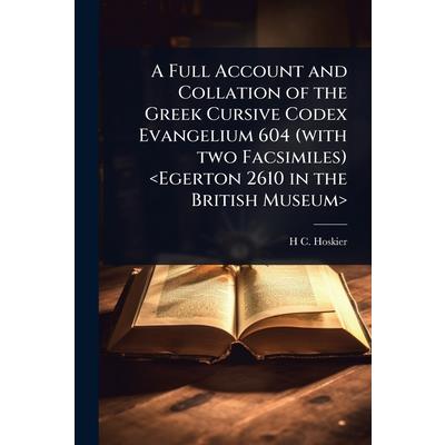A Full Account and Collation of the Greek Cursive Codex Evangelium 604 presents a detailed analysis of an important biblical manuscript, also known as Egerton 2610, housed in the British Museum. Authored by H.C. Hoskier, this work provides a full collation of the codex, offering invaluable insights for biblical scholars and textual critics. The book includes two facsimiles to aid in the examination of the original text.