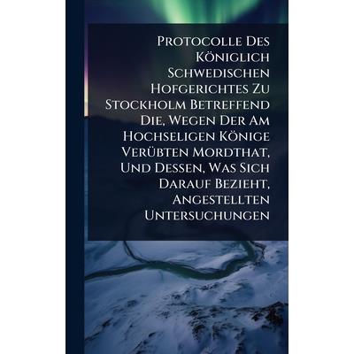 "Protocolle Des K繹niglich Schwedischen Hofgerichtes Zu Stockholm Betreffend Die, Wegen Der Am Hochseligen K繹nige Ver?1/4bten Mordthat, Und Dessen, Was Sich Darauf Bezieht, Angestellten Untersuchungen" offers a detailed historical account of the legal proceedings surrounding a royal assassination investigation within the Swedish court system in Stockholm. This anonymous work provides insight into the protocols and procedures followed by the K繹niglich Schwedischen Hofgerichtes (Royal Swedish Court) during a high-profile murder case involving the Swedish monarchy. The book serves as a valuable primary source for understanding Swedish legal history, royal intrigue, and the administration of justice in the era it documents. Its enduring appeal lies in its direct access to historical events and legal practices of the time.