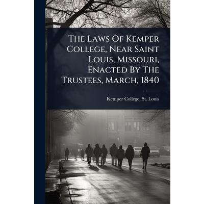 This historical document presents the complete set of laws enacted by the Trustees of Kemper College, near Saint Louis, Missouri, in March 1840. "The Laws Of Kemper College" offers a unique glimpse into the governance and regulations of a 19th-century American institution of higher learning. It provides valuable insights into the academic, social, and administrative aspects of college life during this period. Researchers, historians, and anyone interested in the history of education in the United States will find this volume a fascinating primary source. It reflects the values and expectations of the time and place, making it an important addition to the study of American higher education.