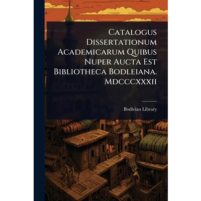 Catalogus Dissertationum Academicarum Quibus Nuper Aucta Est Bibliotheca Bodleiana. Mdcccxxxii