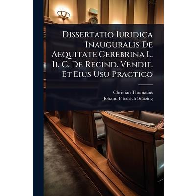 This is a legal dissertation titled "Dissertatio Iuridica Inauguralis De Aequitate Cerebrina L. Ii. C. De Recind. Vendit. Et Eius Usu Practico" by Christian Thomasius and Johann Friedrich St?1/4tzing. It delves into the concept of 'Aequitas Cerebrina' or cerebral equity, particularly within the context of Roman law, referencing specific legal texts ('L. Ii. C. De Recind. Vendit.').
