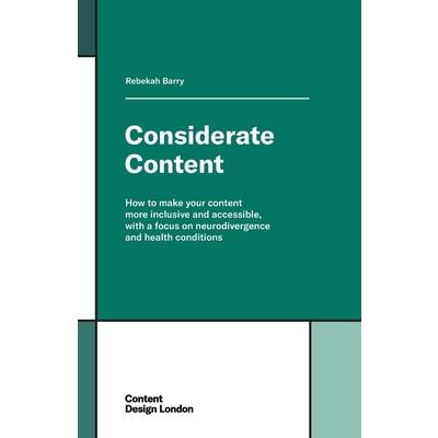 Rebekah Barry draws on her experience of doing research with people with wide-ranging needs, showing that accessibility and inclusion are not just tick boxes on a compliance chart. Instead, being considerate of people's different needs is central to making content better for everyone. Whether you're an interaction designer, content creator, policy maker, or educator, this book guides you through how to make your content more inclusive and accessible, with a focus on neurodivergence and health conditions.
