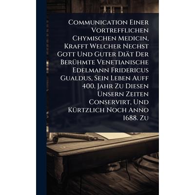 Communication Einer Vortrefflichen Chymischen Medicin, Krafft Welcher Nechst Gott Und Guter Di瓣t Der Ber?1/4hmte Venetianische Edelmann Fridericus Gualdus, Sein Leben Auff 400. Jahr Zu Diesen Unsern Z