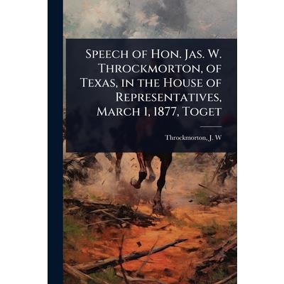 This is the full text of the "Speech of Hon. Jas. W. Throckmorton, of Texas, in the House of Representatives, March 1, 1877." Delivered during the Reconstruction era, the speech offers insight into the political discourse of the time. Throckmorton, a prominent figure in Texas politics, addresses issues relevant to the nation and his state in the aftermath of the Civil War. This historical document provides valuable context for understanding the challenges and debates surrounding Reconstruction and the reshaping of American society.