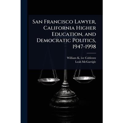 璽€œSan Francisco Lawyer, California Higher Education, and Democratic Politics, 1947-1998璽€ presents the edited transcript of an oral history interview with William K. 璽€œBill璽€ Coblentz, conducted by Leah McGarrigle. This detailed narrative provides insights into Coblentz璽€(TM)s distinguished career as a lawyer in San Francisco, his involvement with California璽€(TM)s higher education system, and his participation in Democratic politics over several decades. The oral history covers his early life, education, legal career, and significant contributions to public service. A valuable resource for those interested in California history, legal history, and the evolution of higher education policy in the state.