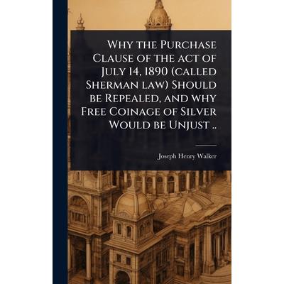 In "Why the Purchase Clause of the act of July 14, 1890 (called Sherman law) Should be Repealed, and why Free Coinage of Silver Would be Unjust ..", Joseph Henry Walker presents a detailed argument concerning the economic and legal implications of the Sherman Antitrust Act and the proposed free coinage of silver. Published in 1893, this work offers a contemporary perspective on the debates surrounding monetary policy and antitrust legislation during a pivotal period in American history. Walker meticulously dissects the purchase clause of the Sherman Act, advocating for its repeal. He also argues against the free coinage of silver, asserting its potential to create economic instability and injustice.