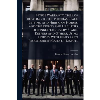 Horse Warranty. the law Relating to the Purchase, Sale, Letting and Hiring of Horses, and the Rights and Liabilities of Innkeepers, Livery Stable Keepers and Others, Using Horses, With Hints as to Pro