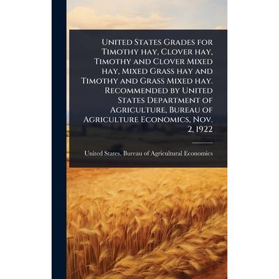 United States Grades for Timothy hay, Clover hay, Timothy and Clover Mixed hay, Mixed Grass hay and Timothy and Grass Mixed hay. Recommended by United States Department of Agriculture, Bureau of Agric