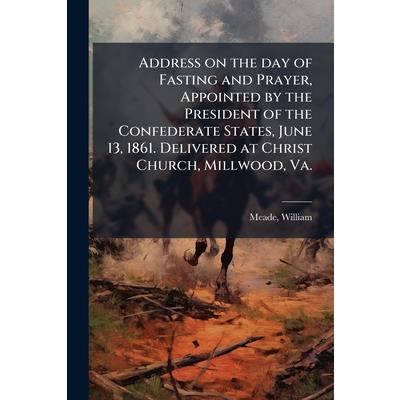 This is a printed sermon, "Address on the day of Fasting and Prayer, Appointed by the President of the Confederate States, June 13, 1861. Delivered at Christ Church, Millwood, Va.", delivered by William Meade in 1861. This historical address provides insights into the religious and social perspectives of the time during the American Civil War. It offers a primary source look into the context of religious life during the early days of the Confederacy and the role of faith in shaping public opinion. This historical document is valuable for researchers and anyone interested in understanding the complex dynamics of the Civil War era.