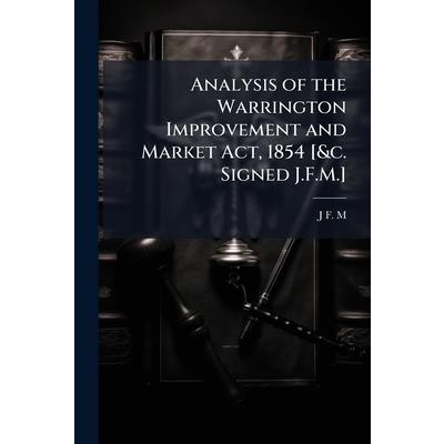 This is an analysis of the Warrington Improvement and Market Act of 1854, a significant piece of legislation impacting the development of Warrington, England. This document provides insights into the legal and regulatory framework established for the improvement and governance of the town, particularly concerning market regulations and urban development initiatives. Signed by J.F.M., this analysis offers a contemporary perspective on the act's provisions and implications.