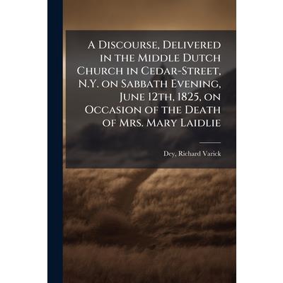 A commemorative sermon delivered by Richard Varick Dey in 1825, "A Discourse, Delivered in the Middle Dutch Church in Cedar-Street, N.Y. on Sabbath Evening, June 12th, 1825, on Occasion of the Death of Mrs. Mary Laidlie," offers a glimpse into the religious and social customs of early 19th-century New York. Dey's oration reflects upon the life and passing of Mrs. Laidlie, likely a prominent member of the Middle Dutch Church. This historical document provides insight into the eulogistic traditions of the time, the role of the church in community life, and the theological perspectives on death and mourning prevalent during this era. The sermon is a valuable resource for researchers interested in religious history, social history, and the history of New York City.