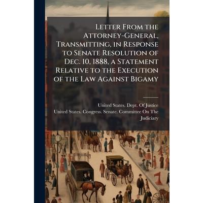 This document comprises a letter from the Attorney-General of the United States, responding to a Senate resolution dated December 10, 1888. The letter transmits a statement regarding the execution of the law against bigamy. As a historical record, this document provides insight into the legal and governmental actions taken during the late 19th century in the United States concerning the prosecution of bigamy.