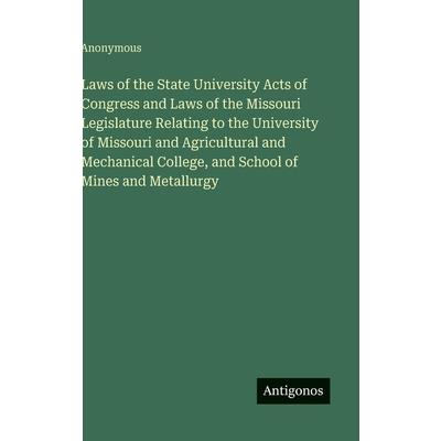 Laws of the State University Acts of Congress and Laws of the Missouri Legislature Relating to the University of Missouri and Agricultural and Mechanical College, and School of Mines and Metallurgy
