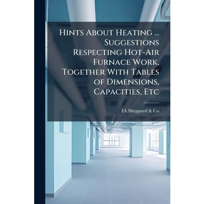 Hints About Heating is a practical guide to hot-air furnace work, originally published in 1897 by IA Sheppard & Co. This volume offers detailed suggestions and tables of dimensions and capacities for those involved in heating system design and installation. While reflecting the technology of its time, "Hints About Heating" provides valuable insights into the principles and practices of late 19th-century heating technology. It is a useful resource for historians, engineers, and anyone interested in the evolution of heating systems.