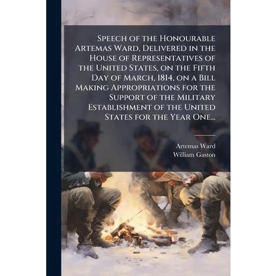 This is a transcription of the "Speech of the Honourable Artemas Ward," delivered in the House of Representatives on March 5, 1814. Presented during a crucial period of the War of 1812, Ward addresses the bill making appropriations for the support of the military establishment of the United States.