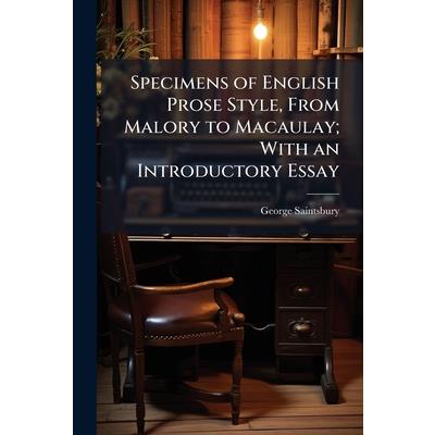 Specimens of English Prose Style, From Malory to Macaulay; With an Introductory Essay