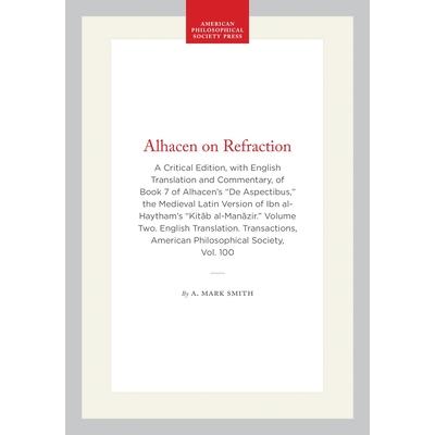 Alhacen's treatment of light and sight in the "De aspectibus" culminates with the analysis of refraction in book 7. Far briefer than his account of reflection, which occupies three books, Alhacen's study of refraction follows essentially the same pattern of analysis, starting with various experiments designed to establish or confirm the governing principles of refraction empirically and proceeding to the application of those principles to specific cases according to the shape of the refracting surface. In many respects, in fact, reflection and refraction are side of the same coin according to Alhacen. Contents of this two-volume set: (1) Intro.: Alhacen's Analysis of Refraction: An Overview; The Prolemaic Underpinnings of Alhacen's Refraction Analysis; The Fate of Alhacen's Refraction Analysis in the Latin West; Putting Alhacen in His Proper Place; (2) Manuscripts and Editing; (3) Latin Text; (4) English Translation. Glossary and Biblio. Illus.