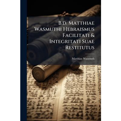 B.d. Matthiae Wasmuthi Hebraismus Facilitati & Integritati Suae Restitutus by Matthias Wasmuth is a comprehensive guide to Hebrew studies. This volume is structured into three parts: a new grammar, a methodical institution of Hebrew accentuation, and a defense of the sacred Hebrew scriptures. Wasmuth's work aims to restore Hebrew to its original ease and integrity, providing students and scholars with the tools necessary to understand and appreciate the nuances of the Hebrew language. This book is essential for anyone interested in Biblical studies, linguistics, or the historical study of Hebrew.