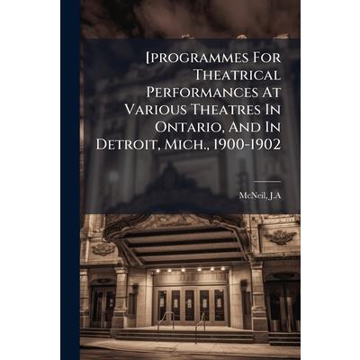 [programmes For Theatrical Performances At Various Theatres In Ontario, And In Detroit, Mich., 1900-1902