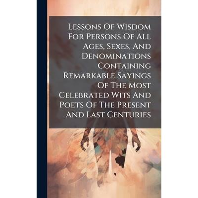 "Lessons Of Wisdom For Persons Of All Ages, Sexes, And Denominations" is a collection of remarkable sayings from celebrated wits and poets of the past and present. This timeless anthology offers insightful reflections on life, morality, and the human condition. Covering a wide range of topics, the book presents a diverse array of perspectives designed to enlighten and inspire readers of all backgrounds. Its enduring appeal lies in its concise yet profound observations, making it a valuable resource for those seeking wisdom and guidance.