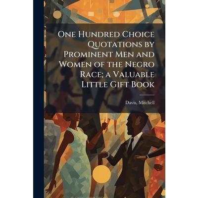 "One Hundred Choice Quotations by Prominent Men and Women of the Negro Race" is a curated collection of insightful and inspiring words from notable figures of the African American community. Compiled in 1917 by Mitchell Davis, this valuable little gift book offers a glimpse into the thoughts and experiences of individuals who shaped history and culture during a pivotal era.