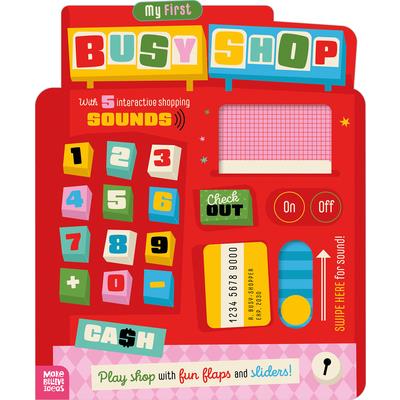 Little ones will love pretending to serve customers as they interact with the flaps and noisy sliders in this cash-register-shaped book. Each store has its own cash register with a fun novelty, including store-themed sounds, a coin slider, and a credit-card-swipe slider.