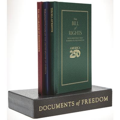 This handsome three-book set, elegantly stamped in celebration of America 250 and proudly made in the USA, features the three most historic founding documents of the United States of America: The Declaration of Independence, The Constitution of the United States of America, and The Bill of Rights.