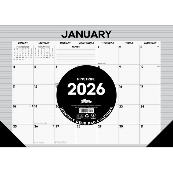 Pinstripe 2026 17 X 12 Small Monthly Deskpad