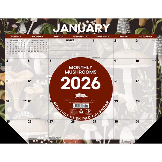 Mushrooms 2026 22 X 17 Large Monthly Deskpad
