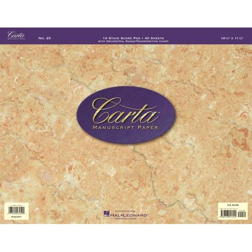 (Carta Manuscript Paper). No. 25. Score pad, 14-3/4 x 11-1/2, 40 sheets, 14 staves, includes Orchestral Range/Transposition Chart.