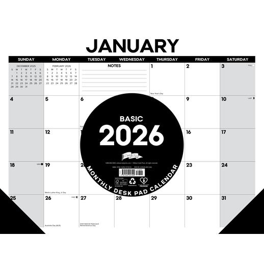 Basic 2026 22 X 17 Large Monthly Deskpad