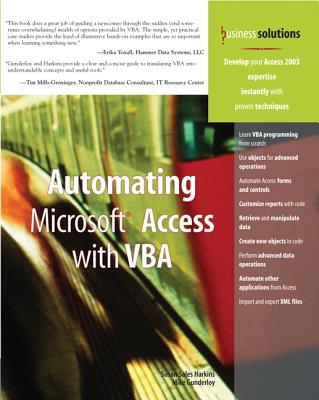 If you use Microsoft Access in your every day business life but haven't learned to fully exploit the program, now's your chance. Automating Microsoft Access with VBA is a thorough introduction to programming Microsoft Accessing using Visual Basic for Applications (VBA). With this book, you will gain a working knowledge of VBA and be able to customize your Microsoft Access databases. You will cover topics that include: Operators and functions Debugging and error handling Menu commands Forms and reports Jet databases DAO object model Save money by learning to use VBA to customize your databases instead of paying someone else to do it for you!