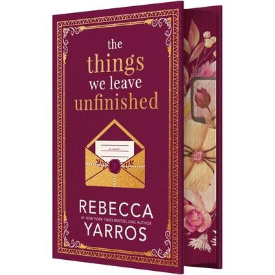 Don't miss this stunning special edition hardcover of #1 NYT bestselling author Rebecca Yarros's viral, dual timeline love story. This deluxe, unsigned, hardcover features a jacket-less foiled hardcase, stenciled edges, custom endpapers with original art, and a new letter to readers. A true collectible! Told in alternating timelines, THE THINGS WE LEAVE UNFINISHED examines the risks we take for love, the scars too deep to heal, and the endings we can't bring ourselves to see coming. Twenty-eight-year-old Georgia Stanton has to start over after she gave up almost everything in a brutal divorce―the New York house, the friends, and her pride. Now back home at her late great-grandmother's estate in Colorado, she finds herself face-to-face with Noah Harrison, the bestselling author of a million books where the cover is always people nearly kissing. He's just as arrogant in person as in interviews, and she'll be damned if the good-looking writer of love stories thinks he's the one to finish her grandmother's final novel...even if the publisher swears he's the perfect fit. Noah is at the pinnacle of his career. With book and movie deals galore, there isn't much the "golden boy" of modern fiction hasn't accomplished. But he can't walk away from what might be the best book of the century―the one his idol, Scarlett Stanton, left unfinished. Coming up with a fitting ending for the legendary author is one thing, but dealing with her beautiful, stubborn, cynical great-granddaughter, Georgia, is quite another. But as they read Scarlett's words in both the manuscript and her box of letters, they start to realize why Scarlett never finished the book―it's based on her real-life romance with a World War II pilot, and the ending isn't a happy one. Georgia knows all too well that love never works out, and while the chemistry and connection between her and Noah is undeniable, she's as determined as ever to learn from her great-grandmother's mistakes―even if it means destroying Noah's career.