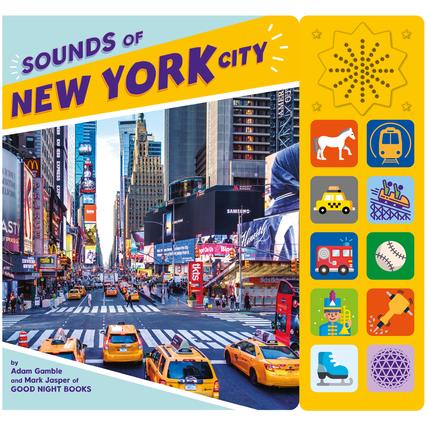 Little New Yorkers will enjoy viewing lifelike pictures and listening to authentic sounds in this charming sound book of the Big Apple. Push the button and hear the crowd roar at Yankee Stadium, skaters gliding around Rockefeller Center, and the celebration of New Year's Eve in Times Square. Also included is a Central Park carriage ride, Coney Island roller coaster, honking taxicabs, fire engine siren, the schmear of cream cheese on a bagel, the New York Philharmonic Orchestra, and more. This book is part of the Good Night Our World Series, which includes hundred of titles exploring iconic locations and exciting themes. Young readers will love discovering the iconic treasures of New York City in this adorable sound book. The book features an on and off switch on the back cover to extend battery life.