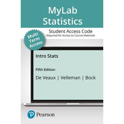 MyLab Math Standalone Access Card to accompany De Veaux/Velleman/Bock, Intro Stats, 5/e This item is an access card for MyLab(TM) Math. This physical access card includes an access code for your MyLab Math course. In order to access the online course you will also need a CourseID, provided by your instructor. This title-specific access card provides access to the De Veaux/Velleman/Bock, Intro Stats, 5/e accompanying MyLab course ONLY. 0134768361 / 9780134768366 MyLab Math with Pearson eText - Standalone Access Card - For Intro Stats, 5/e