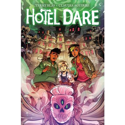 It's not your typical family vacation when Olive, and her adopted siblings Darwin and Charlotte find themselves falling into other worlds as they explore Grandma Lup矇's strange hotel. OPEN THE DOOR. ADVENTURE AWAITS. Olive and her adopted siblings Charlotte and Darwin are spending the summer with their estranged grandma at her creepy hotel and it's all work and no play. They're stuck inside doing boring chores but they soon stumble upon an incredible secret... Behind each room door of the hotel lies a portal to a different strange and mysterious place. The simple turn of a knob transports them to a distant magical world filled with space pirates. Behind the next door are bearded wizards. Down the hall is a doorway to a cotton-candied kingdom. But once the doors are opened, worlds start colliding, and only one family can save them before they tear themselves apart. Written by Terry Blas (The Amazing World of Gumball) and illustrated by the talented Claudia Aguirre (Kim & Kim), this world-hopping fantasy tale breaks down the door to imagination and dares you to embrace the idea that family is everything.
