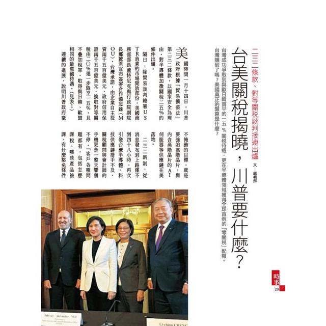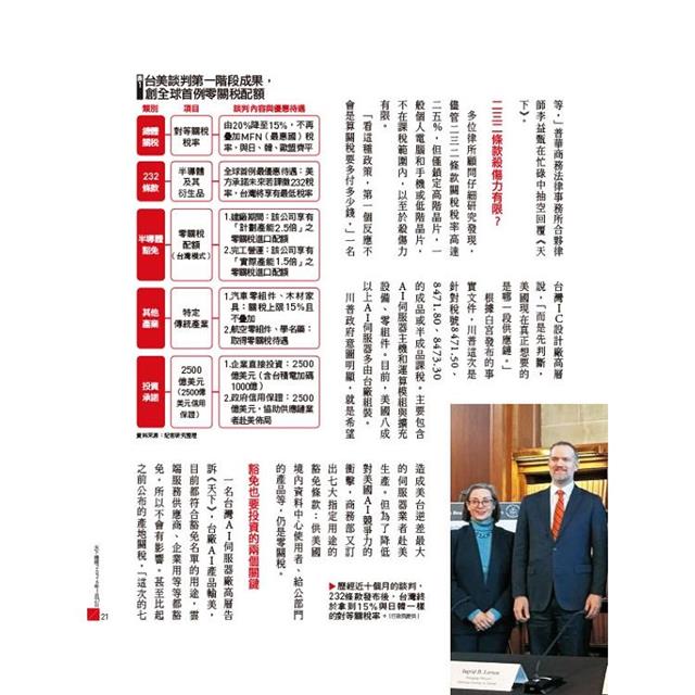 二○二六開年,兩個大新聞都與半導體有關:一是台積電在美國多買了一塊地,不否認將在一六五○億美元外再增投資;一是台灣與美國商務部談判結束,半導體領頭的對美投資兩千五百億美元,換取對等關稅降到一五%,與日韓相當。