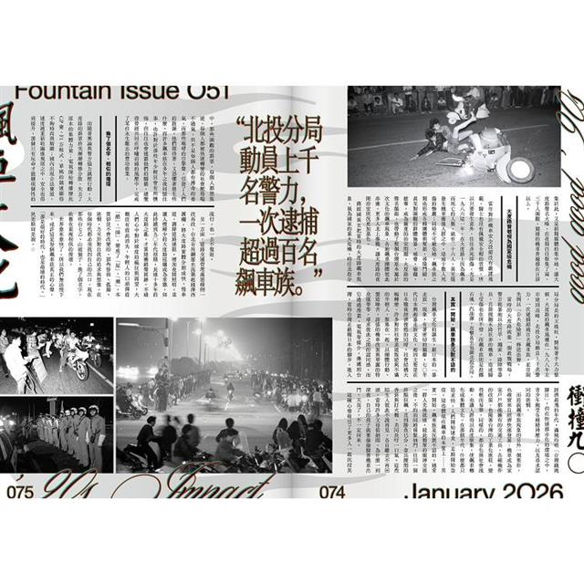 然而仔細想想他們的確多半生在那個年代,只是那種生不算他們說的這種生。你說這種「生」是什麼?在台灣,或許包括了多少次在一九九九年某個天亮之前徘徊於不打烊的**敦南,一月號封面故事「九〇年代好(像很有趣)」裡,資深出版人與文化評論家詹偉雄要說說九〇年代風頭出盡的**如何佔據一到兩代的文化風景;又據說,這個二十四小時營業書店的提案,來自作家袁瓊瓊,本期裡她帶著你我一起看她的《魔戒》、《駭客任務》、吉卜力與千禧蟲危機。如果將九〇年代的娛樂新聞濃縮成一天,多少事物當時只道是尋常,又或許真的成功搭上時光機,那注意你的聽,那是MTV與Channel V打擂台、歌后天王神仙鬥法金光亂射的大時代;也要注意靚仔時髦精們的穿,那些風格在二〇二六重新流行不只是復古而已,九〇年代的影響始終不曾遠離;喔對了你還要注意馬路,它也是大度路飆車飆出「國家級危機」的時代,本期有中研院研究學者黃哲翰、金獎廣播人與樂評人小樹、球評與前交警石明謹、資深娛樂記者旁白鴿、資深時尚編輯吳國瑋,以及二〇〇〇年生的古著愛好者黃祐紘,他們把這些故事說得非常好聽。