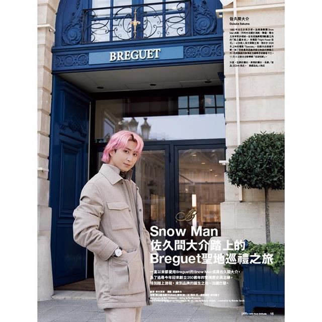 本期更以日本人氣偶像 佐久間大介(Snow Man成員)為封面人物,以其招牌粉紅元素呈現巴黎經典錶聖地巡禮。透過腕錶,觀看一位當代偶像