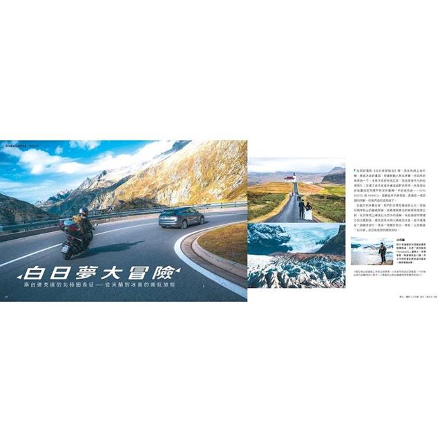 鏡頭轉向海外,旅遊作家溫士凱將百貨公司化為觀察世界的文化場域,揭示商場設計與城市精神的驚人創造力;水下攝影師PEGGY遠赴印尼馬拉圖,與鯨鯊共游、潛入靜謐藍洞;而重機攝影家火花羅,則展開兩台速克達的北極圈長征,從米蘭穿越阿爾卑斯山、德國無速限高速公路,途經法羅群島,最終抵達冰島。這不只是一趟旅程,而是關於勇氣、耐力與夢想成真的極限試煉。"