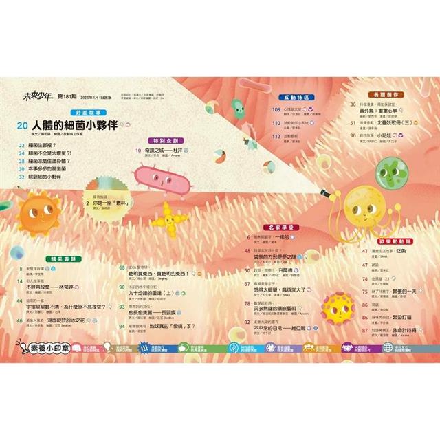 這期封面故事〈人體的細菌小夥伴〉,要帶你走進你體內這座「細菌叢林」,看看這些小夥伴平常在做什麼:是在搗蛋,還是在幫忙?