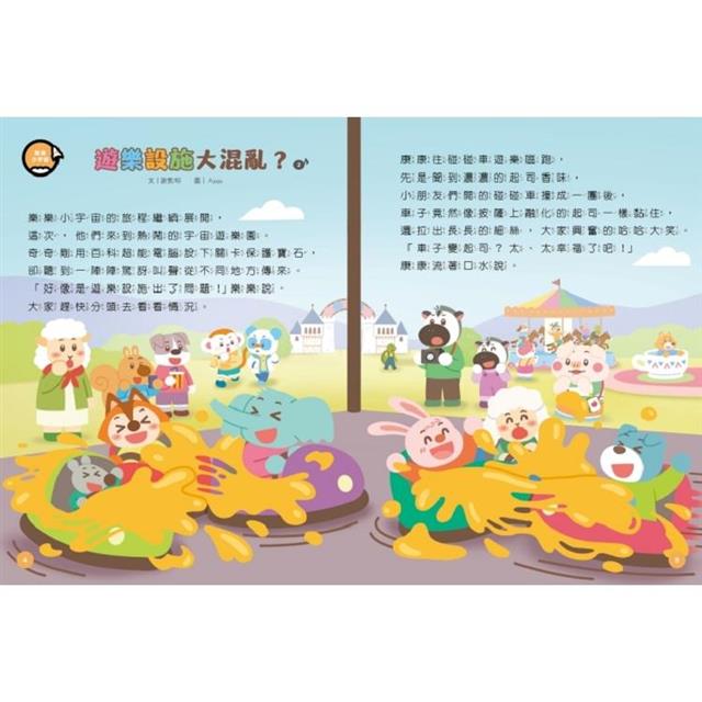 奇奇剛用百科超能電腦設下關卡保護寶石,卻聽到一陣陣驚叫聲從不同地方傳來!本來以為是壞博士出新招,沒想到小朋友們的反應是興奮叫好?宇宙遊樂園的遊樂器材究竟出現了哪些新奇變化?現在就翻開這期「樂樂小宇宙」一睹為快吧!