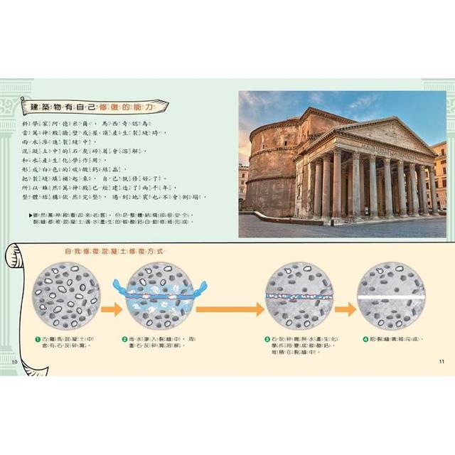 人類的皮膚受傷、骨頭斷掉,可以再長回來,這種情形大家都見怪不怪,但是你聽過建築物產生裂縫,也能自己修復嗎?科學家發現許多古羅馬建築都有這種能力,其中義大利羅馬的萬神殿,建造已經將近兩千年,整體建築結構依舊完整,到現在仍然可以安全使用。原來關鍵就在萬神殿所用的混凝土,古羅馬人製作的混凝土中,含有許多石灰碎屑,而這些看起來像雜質的石灰碎屑,其實就是萬神廟建築裂縫可以自我修復的關鍵物質!