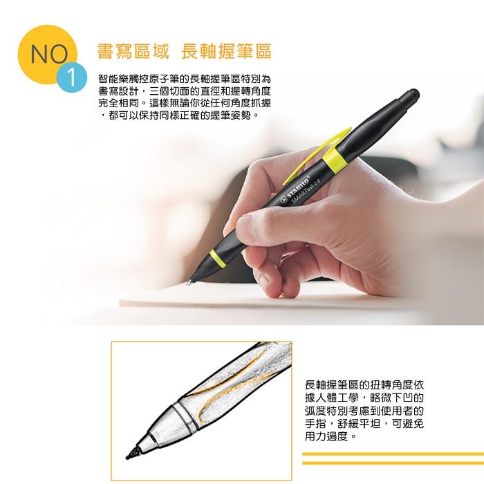 STABILO思筆樂SMARTball2.0智能樂人體工學觸控原子筆右手用/ 黑芯/ 藍黑桿