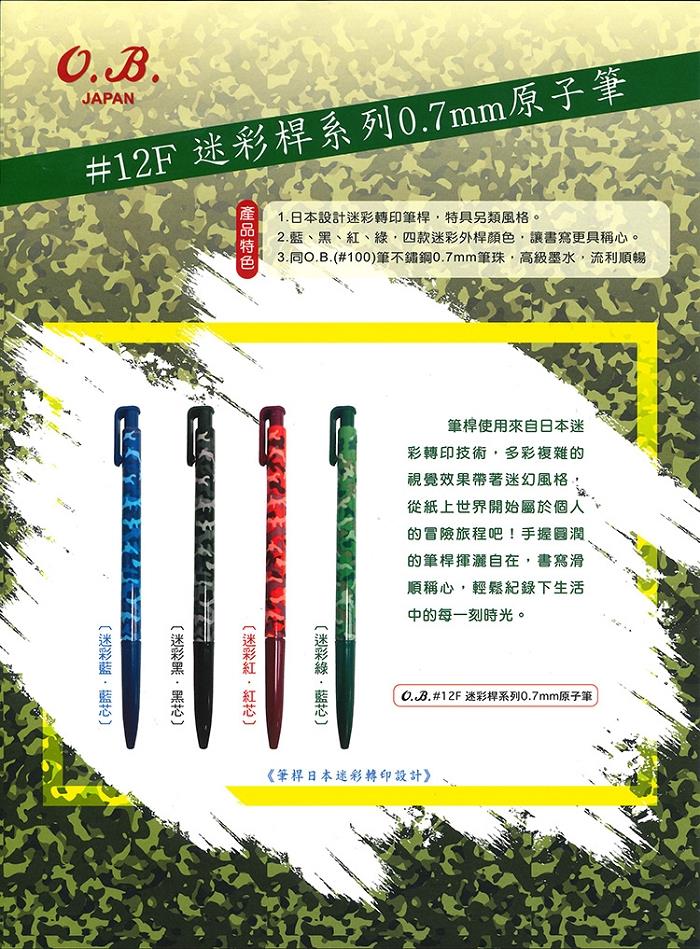 O.B.#12F迷彩桿原子筆0.7 迷彩綠(藍芯)