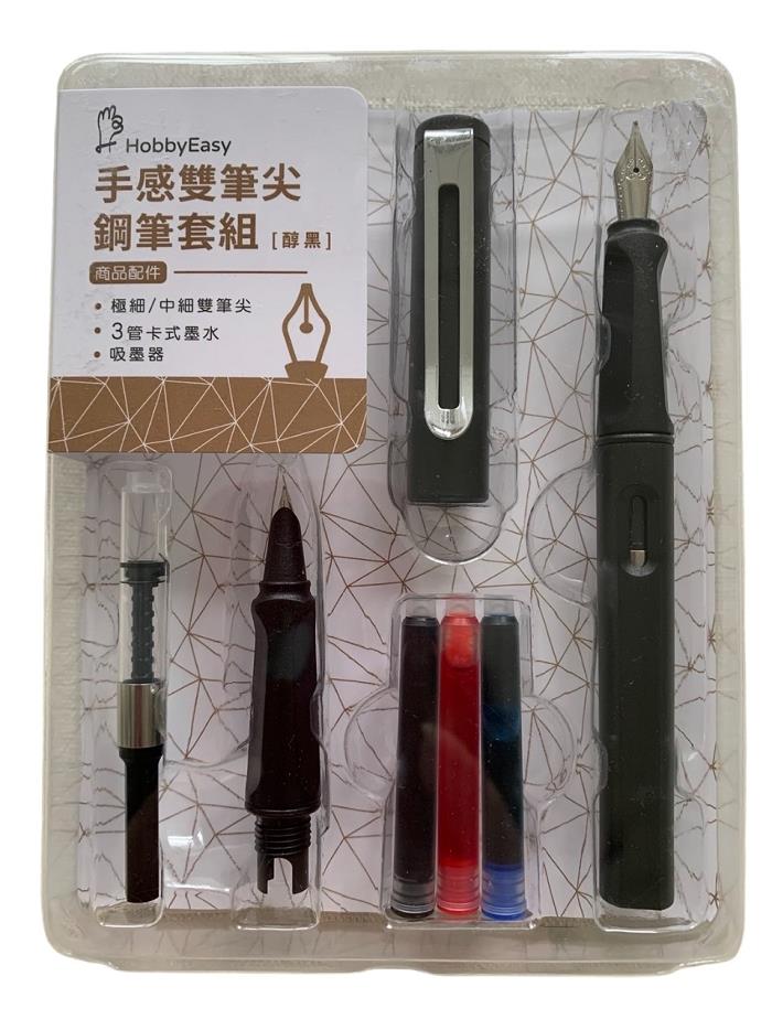 HOBBYEASY  手感雙筆尖鋼筆套組-醇黑 (附中英文練習帖)